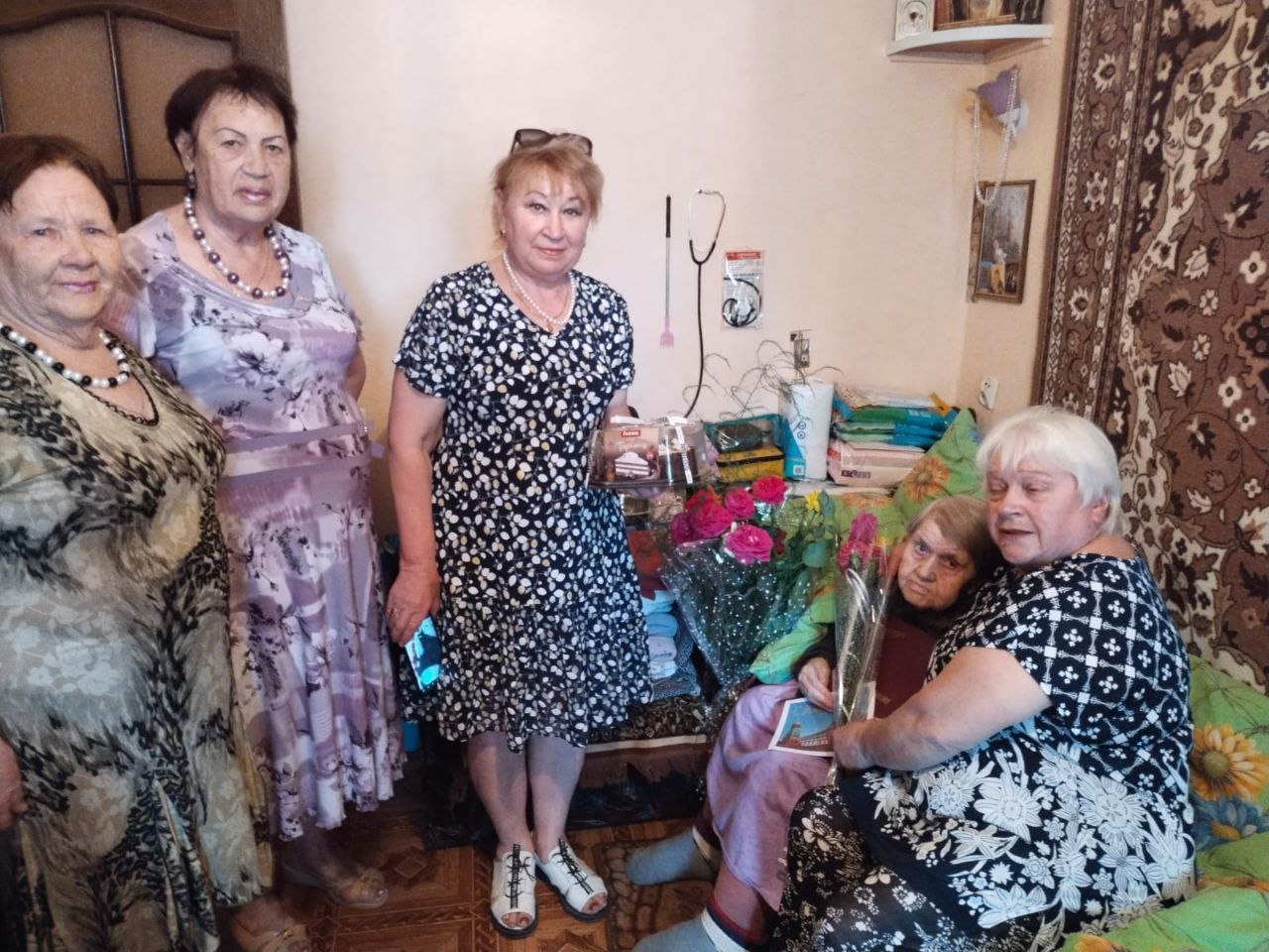 В адрес именинницы прозвучали пожелания здоровья и долголетия, вручена поздравительная открытка от Президента Российской Федерации.