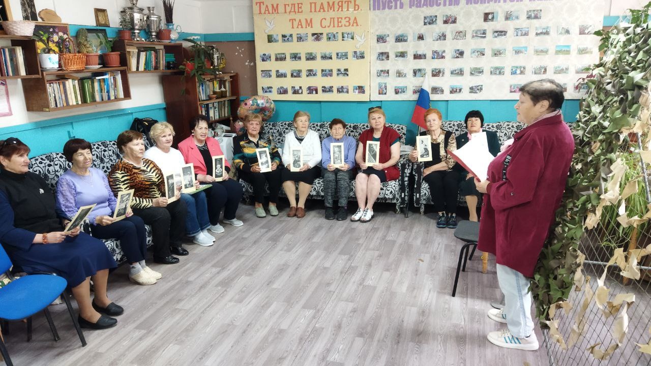 Песни военных лет – особый жанр. Они делили вместе с воином горести и радости, подбадривали озорной шуткой, грустили о родных и близких, помогали преодолевать тяготы войны. «Серебряный» волонтер Ирина Роменская рассказала участникам мероприятия историю создания песен : «Священная война», «В землянке», «Катюша», «Темная ночь», «Случайный вальс». Присутствующие с огромным удовольствием слушали песни в аудиозаписи и пели сами. Гости читали стихи военных лет К.Симонова, Ю.Друниной. Дети войны вспоминали, как помогали им песни в послевоенные годы при восстановлении народного хозяйства нашего района.
