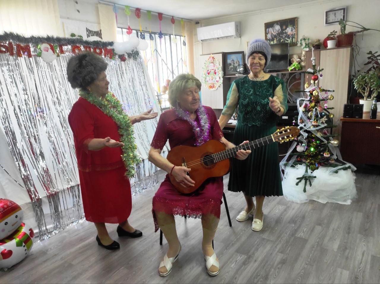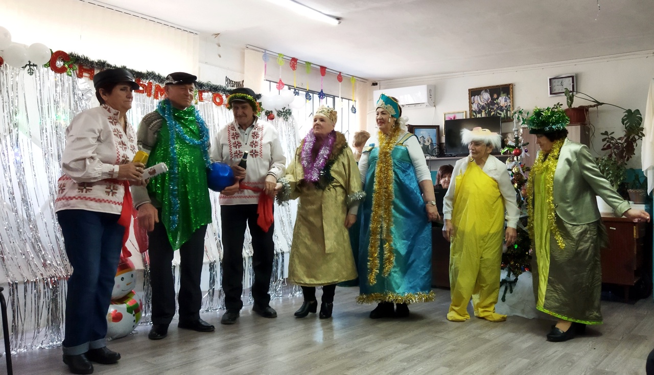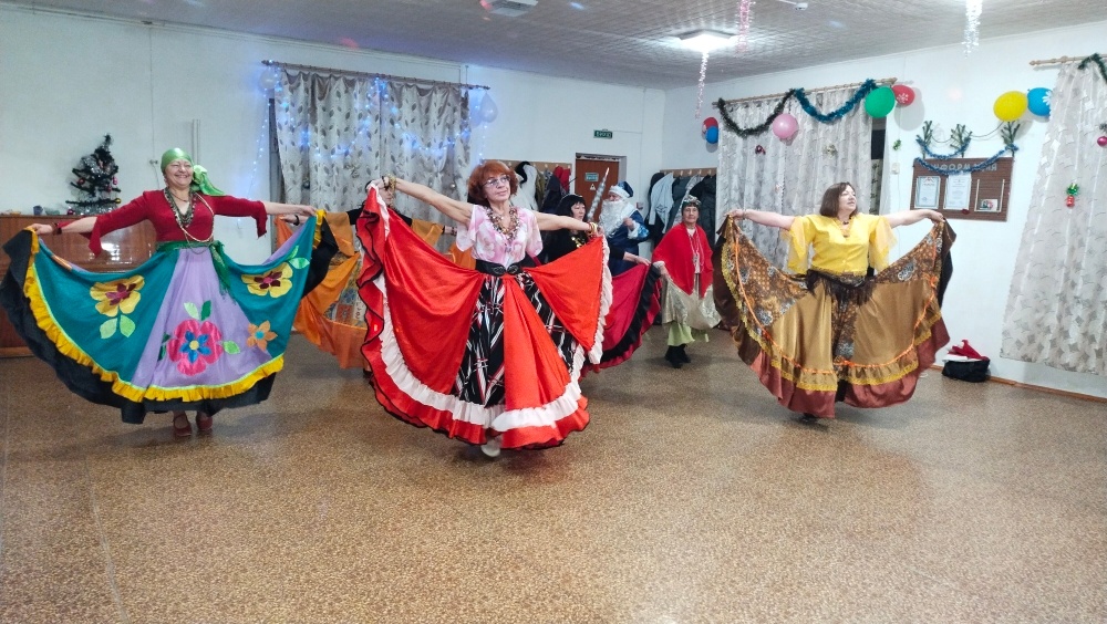 Атмосфера праздника была волшебной, зал переливался разноцветными огнями праздничных украшений, костюмированные персонажи новогодней сказки радовали присутствующих своими песнями, шутками. Пришли в гости Баба Яга и кот Баюн , которые своим волшебством заколдовали, и очаровали всех присутствующих . «Цыганский табор» (танцевальная группа «Казантипский ноктюрн») подарил задор и хорошее настроение. «Серебряный» волонтер Неля Федоровна исполнила новогоднюю песню «А снег идёт», которую подхватил весь зал. Все присутствующие с огромным удовольствием пели песни, рассказывали стихи Дедушке Морозу и Снегурочке и не один из участников не остался без подарка.