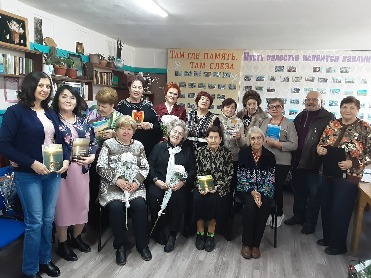 Работниками библиотеки был подготовлен видеоролик «Мы едины в одном – мы люди!». Звучали стихи «серебряных» волонтеров : Светланы Асадовой, Татьяны Бакановой, Татьяны Савиновой, Веры Карповой. Душевными песнями порадовали Неля Новикова и Валентина Магер.